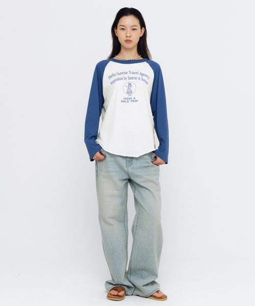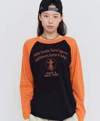 Hello Sunrise 여성사이즈의 래글러 롱슬리브입니다. - 레귤러한 핏의 실루엣 - 가볍고 소프트한터치의 원단 - 후면 헬로선라이즈 태양심볼 그래픽 자수 포인트 * 측정 기준에 따라 1-2cm의 차이가 있을 수 있습니다. * Cotton 100% * Made in Korea * Womens Model : 169cm / Size : Small