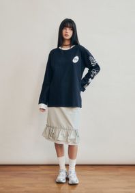 DOUBLE TAPE LAYERD LONG PLEATS SKIRT_NAVY