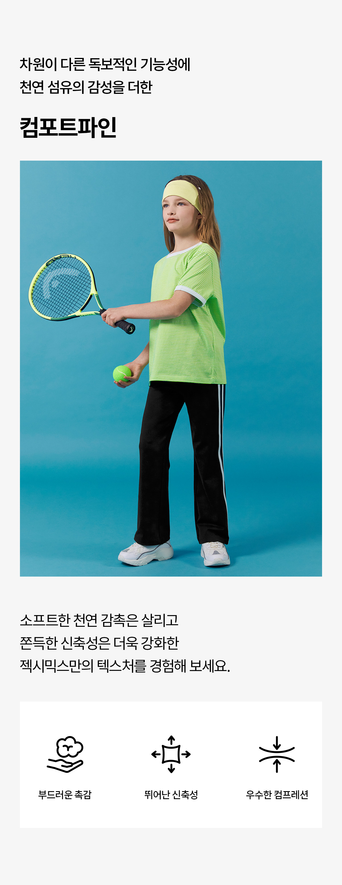 젝시믹스 키즈(XEXYMIX KIDS)는 아이의 활동성을 고려한 설계로, 놀이부터 일상까지 편안함과 기능성을 더해 모든 순간을 함께하는 키즈 액티브웨어 브랜드입니다.
