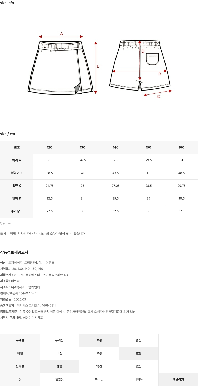 상 ⋅ 하의 : 140 / 140