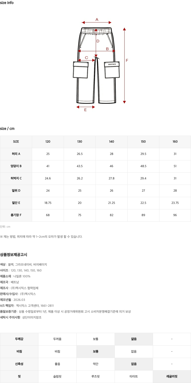 라이트 우븐 키즈 카고 와이드팬츠 XML1PP1302