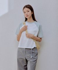에어로쿨 여성 배색 크롭 반팔 티셔츠 (S25MWFTS75) Mint