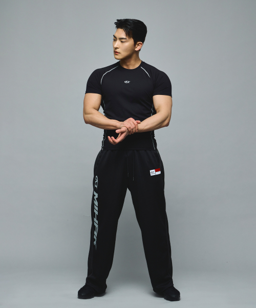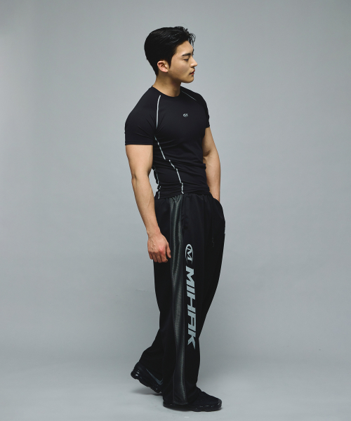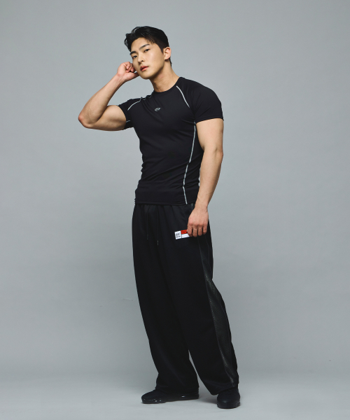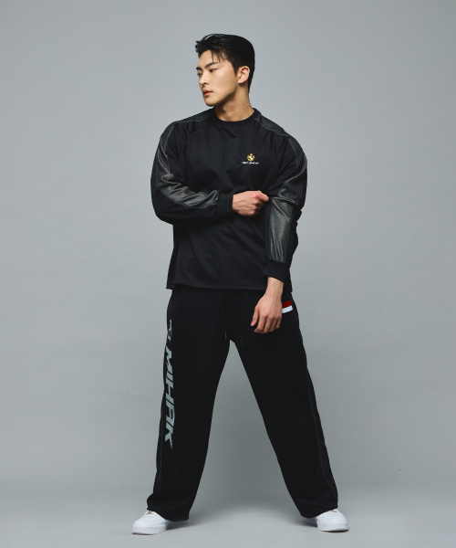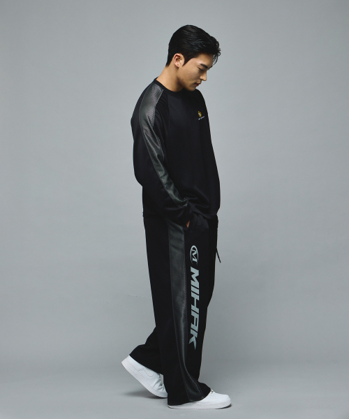 스폰서 로고 메쉬 저지 와이드 팬츠 (BLACK)