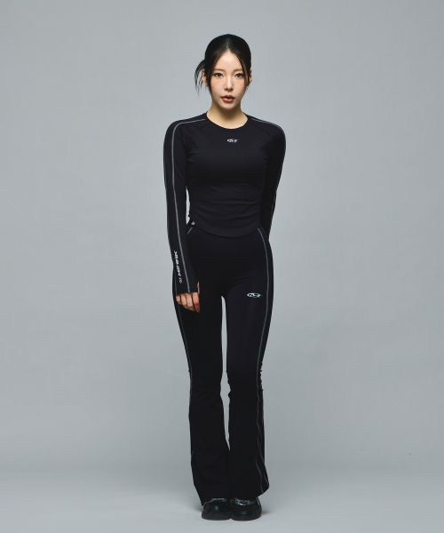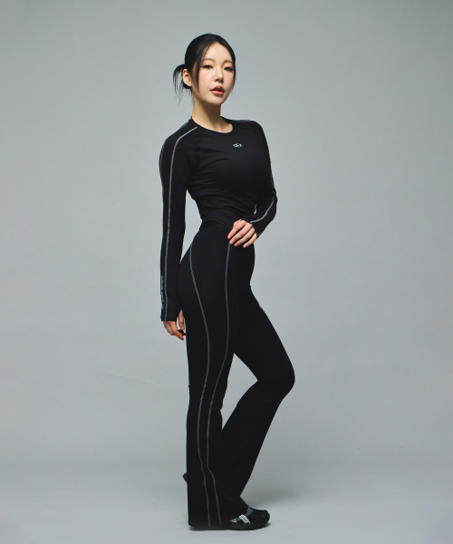 시그니처 밴드 라인 부츠컷 레깅스 (BLACK)