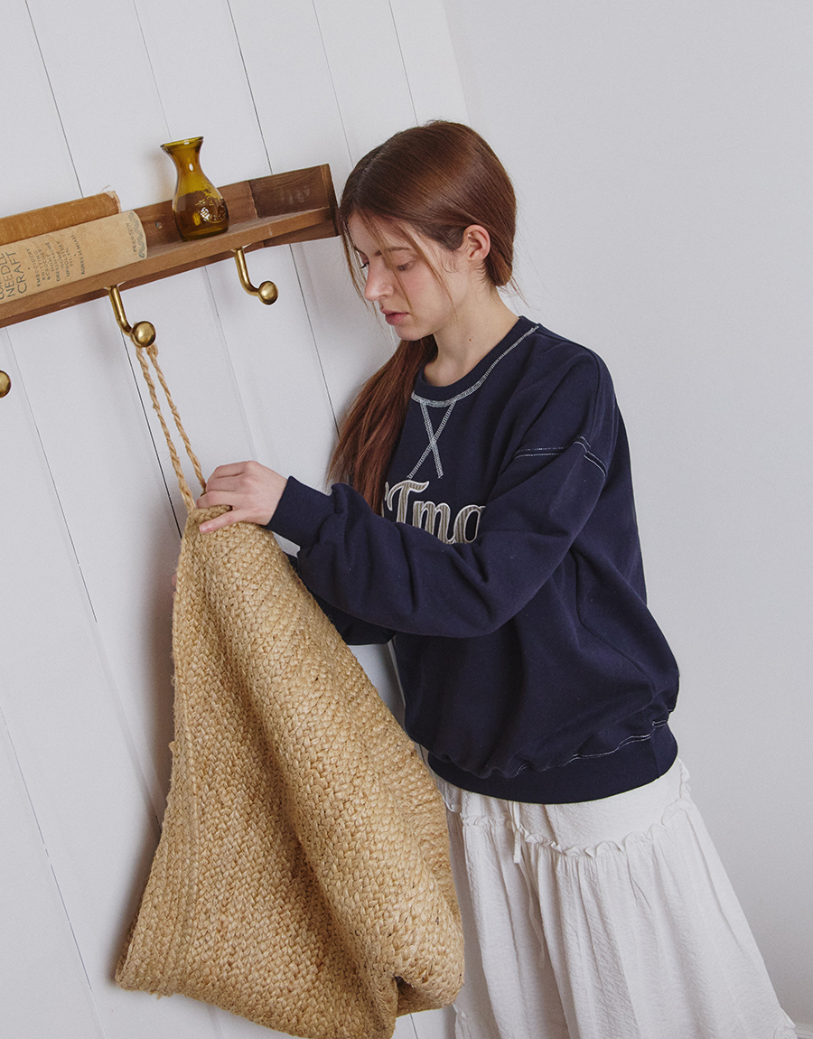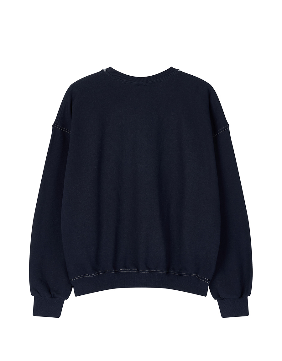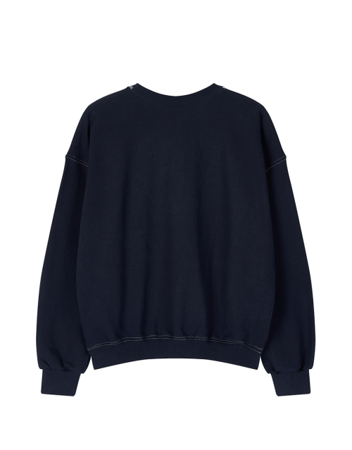 넥라인과 봉제 라인에 배색 스티치를 적용해 클래식한 스웨트 디테일을 살렸습니다.