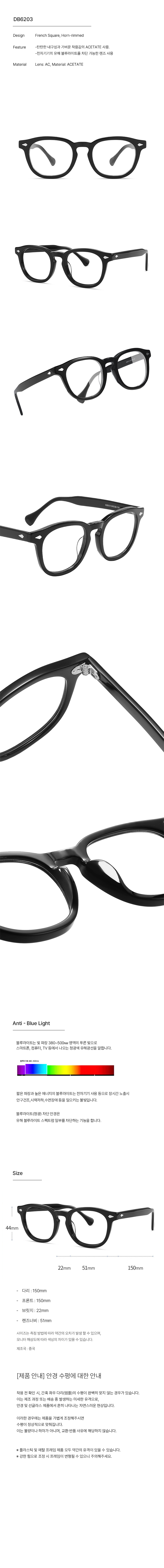 [블루라이트 차단] 라운드 뿔테 블랙 안경 DB6203