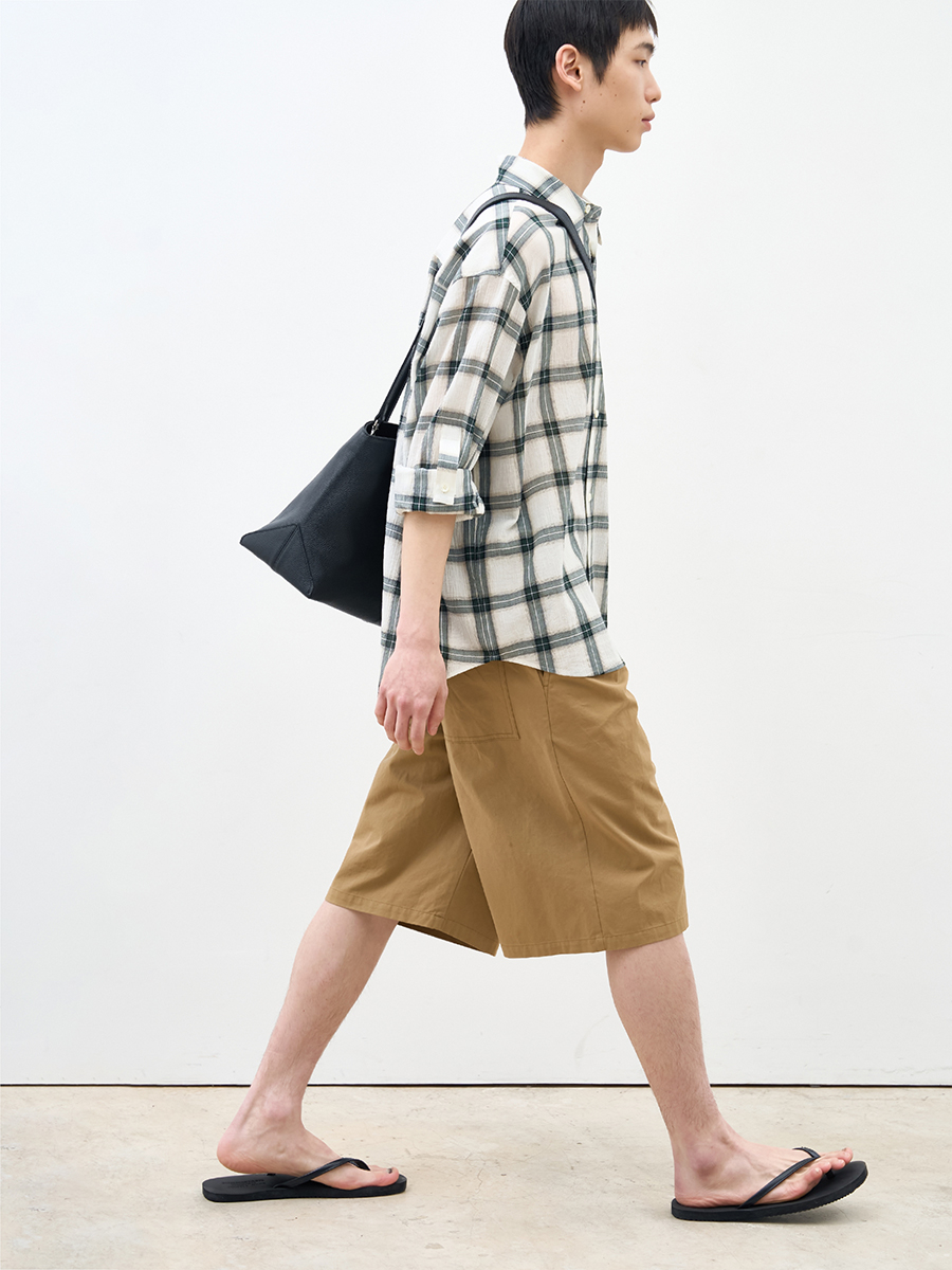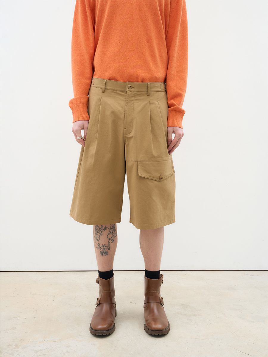 밀리터리의 본질을 현대적인 감성으로 재해석한 필드 투턱 버뮤다 쇼츠.