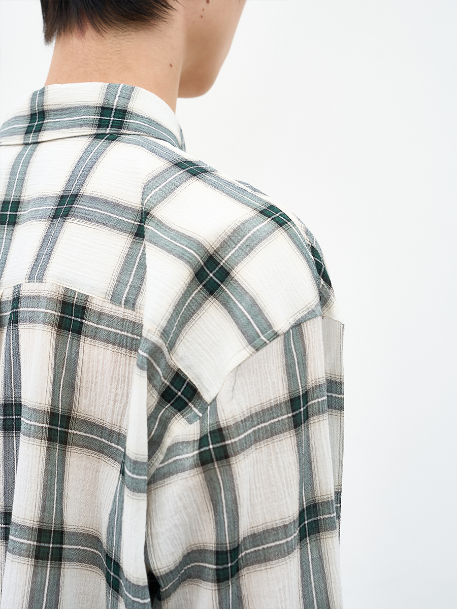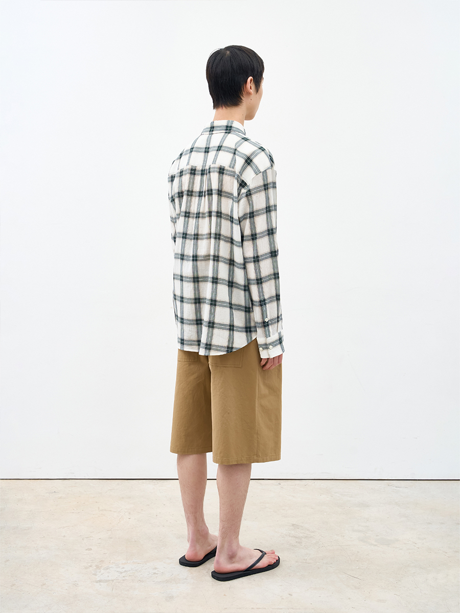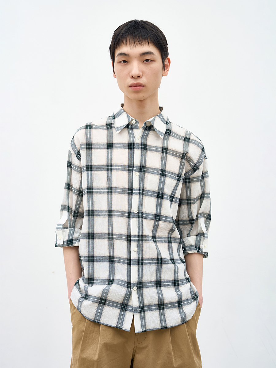 내추럴한 무드의 윈도우페인 체크 패턴 셔츠.