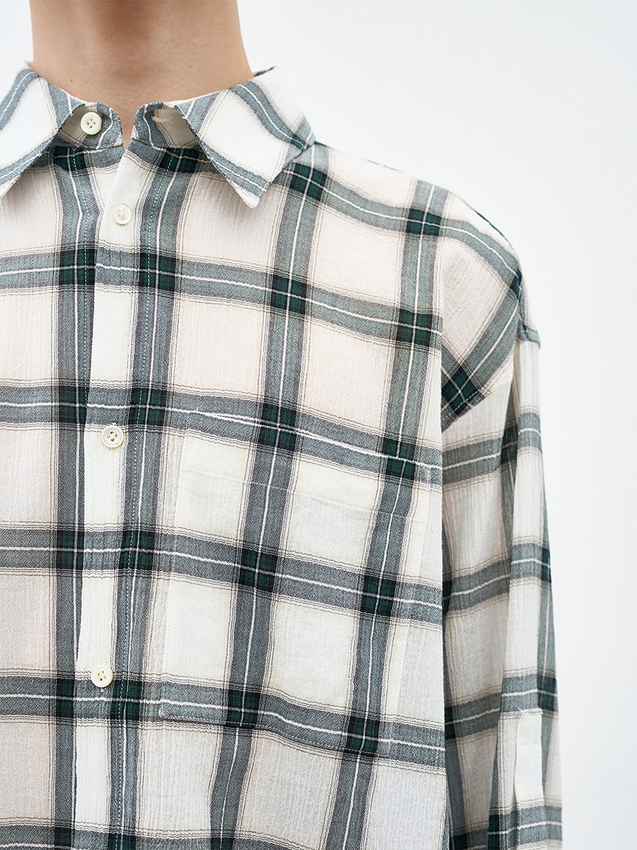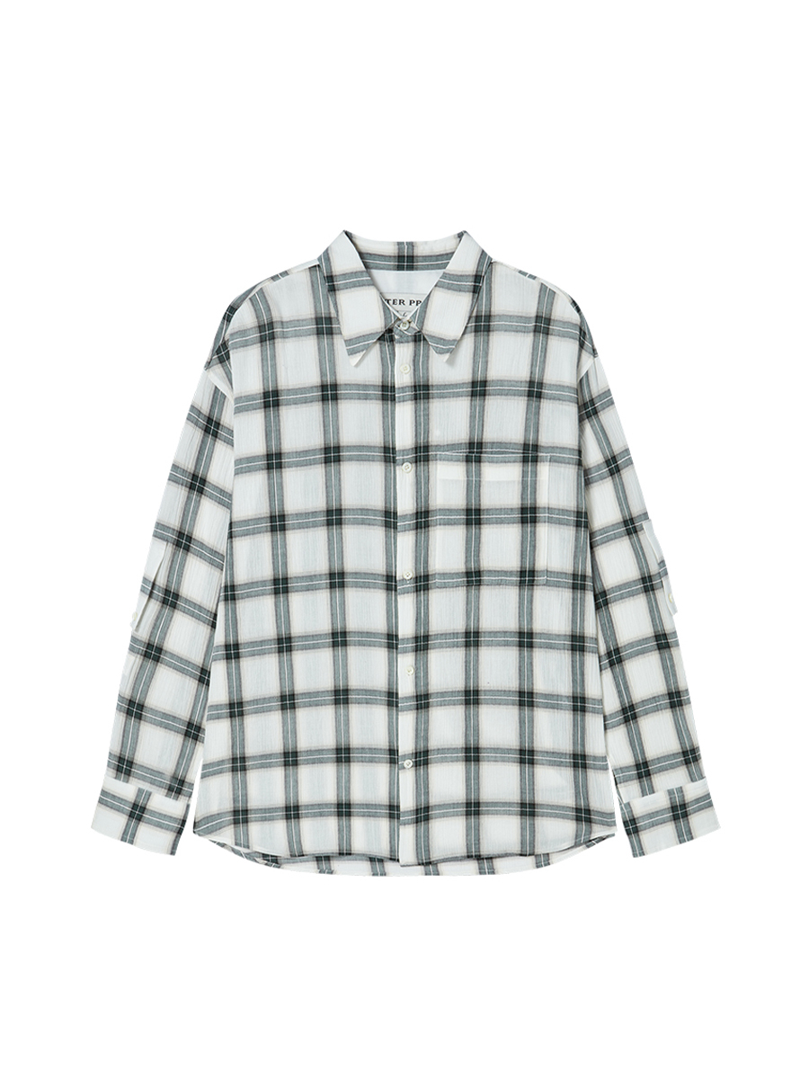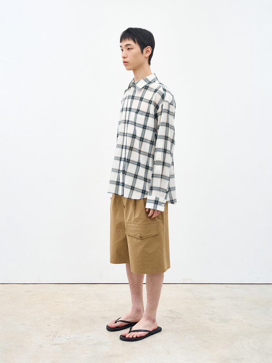 내추럴한 무드의 윈도우페인 체크 패턴 셔츠.
