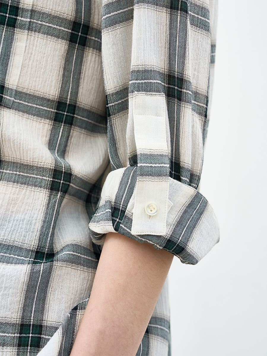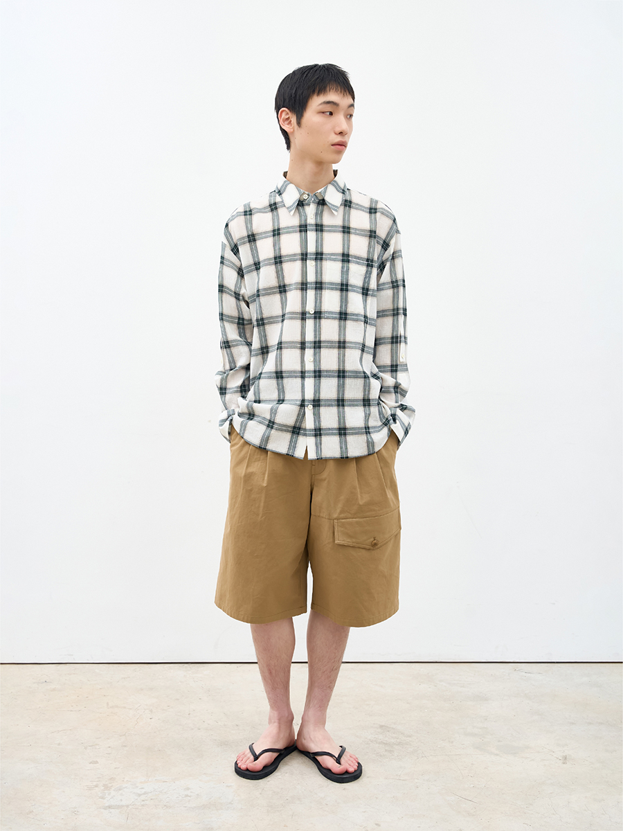 링클 피니시로 입체적인 질감을 살린 60수 선염 코튼의 정교한 텍스처와 트위스트 원사가 구현하는 독보적인 드라이 터치.