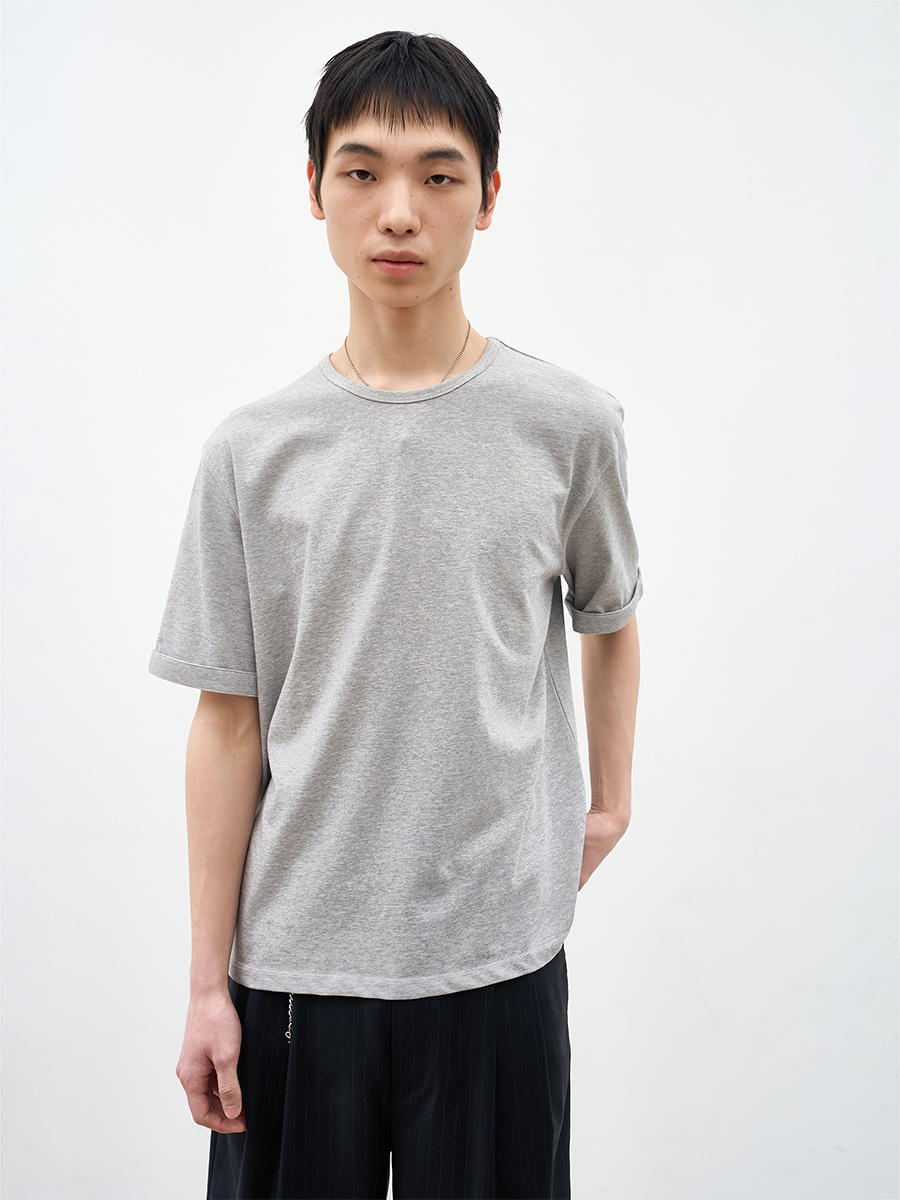 에센셜한 감각으로 새롭게 제안하는 턴업 슬리브 티셔츠.