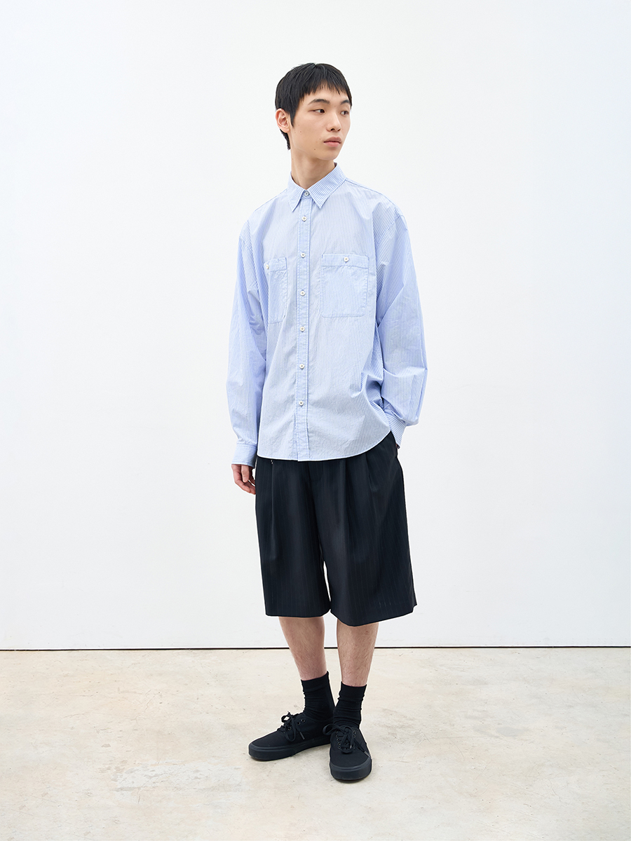 어릴 적 아버지의 옷장에서 발견한 실루엣을 현대적인 감각으로 재해석한 파더 울 트라우저 쇼츠.