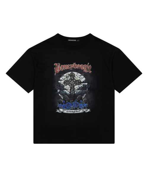 중앙의 십자가와 꽃, 묘지의 요소들을 바탕으로 밴드 포스터를 연상시키는 그래픽으로 표현했습니다.