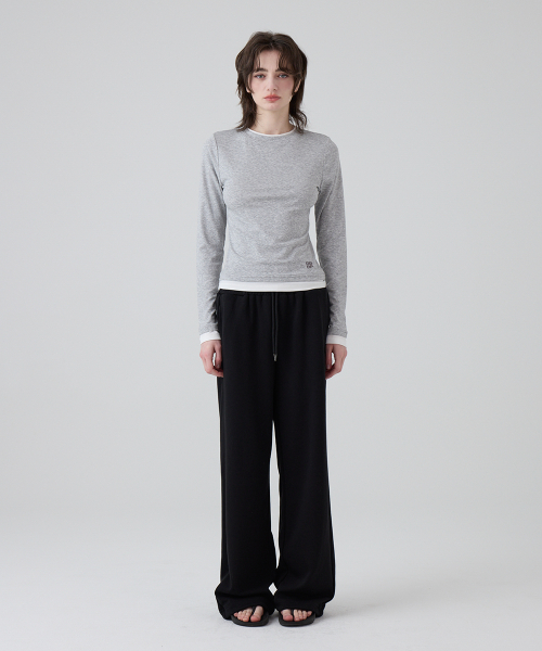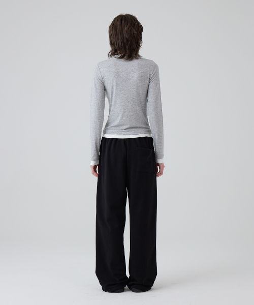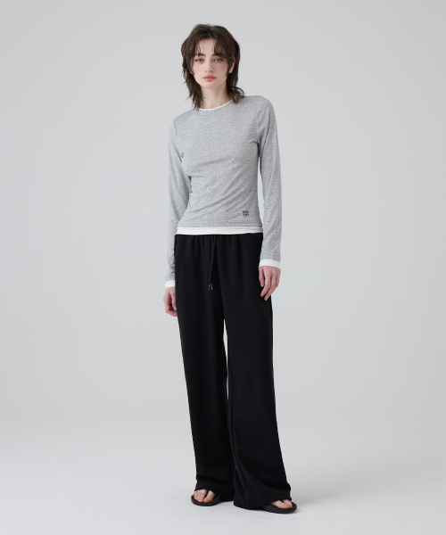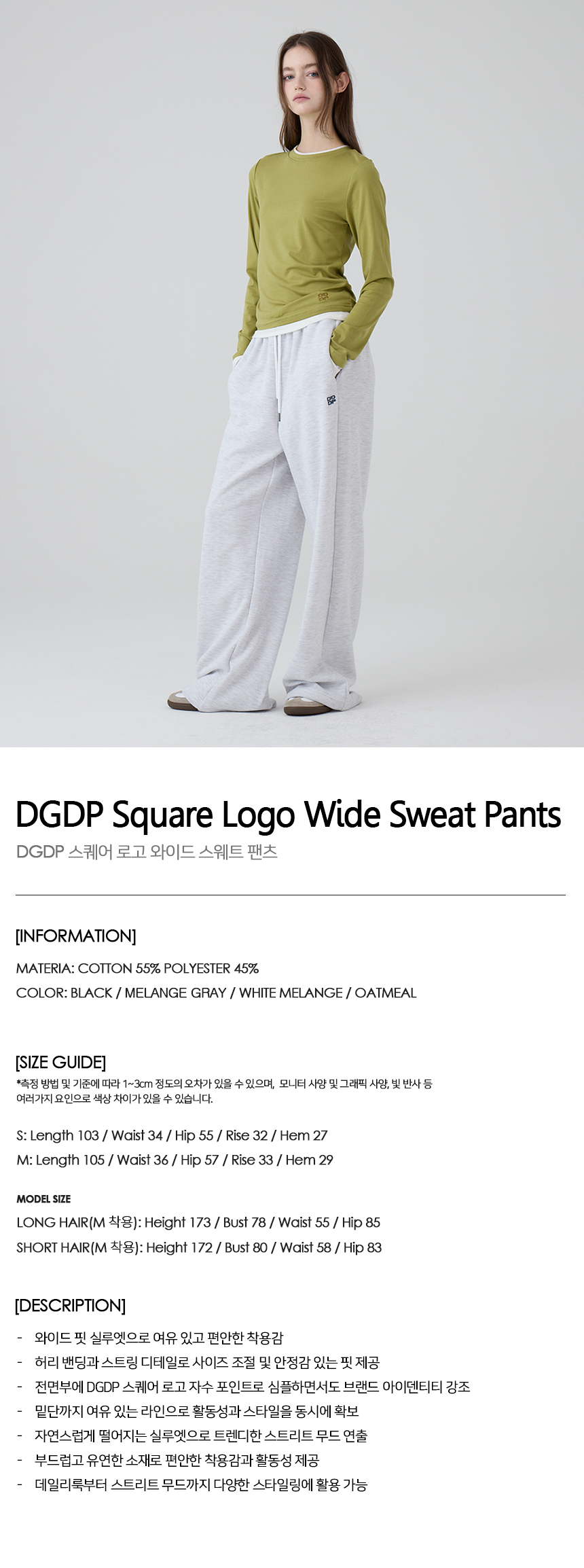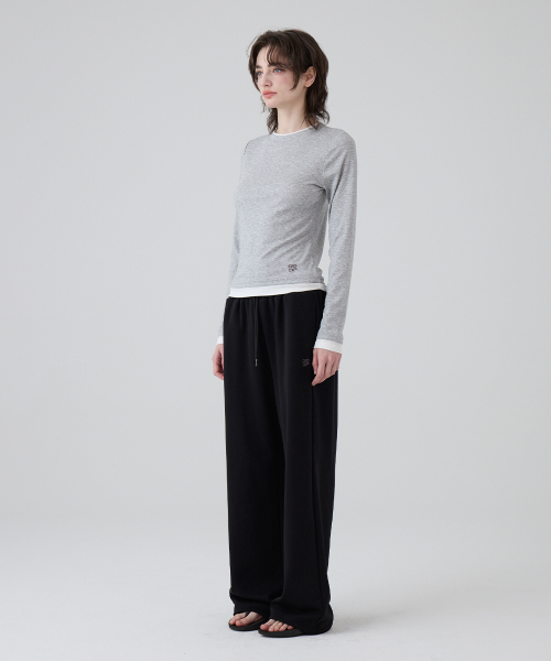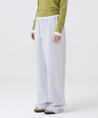 DGDP 스퀘어 로고 와이드 스웨트 팬츠_화이트멜란지