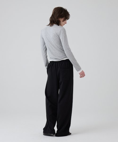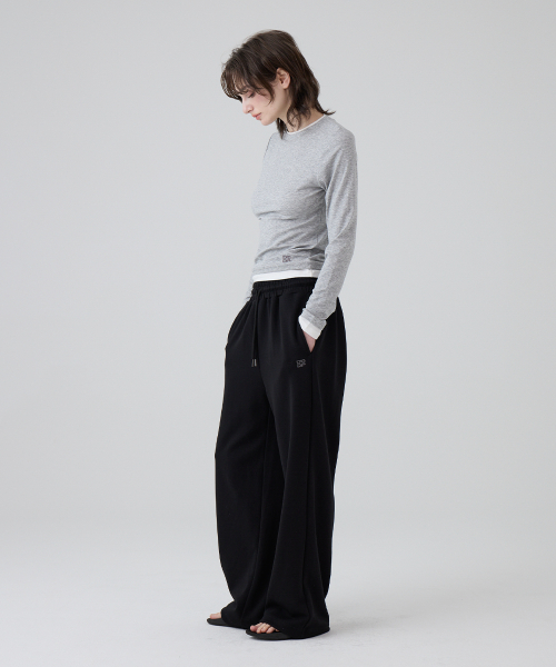 DGDP 스퀘어 로고 와이드 스웨트 팬츠_블랙