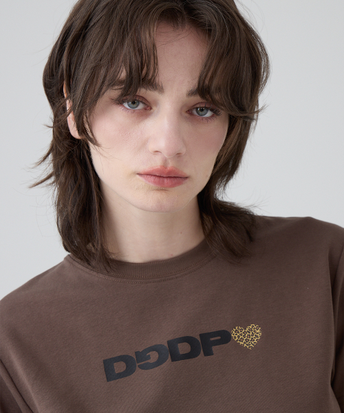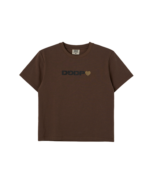 DGDP 레오파드 하트 세미크롭 반팔_브라운