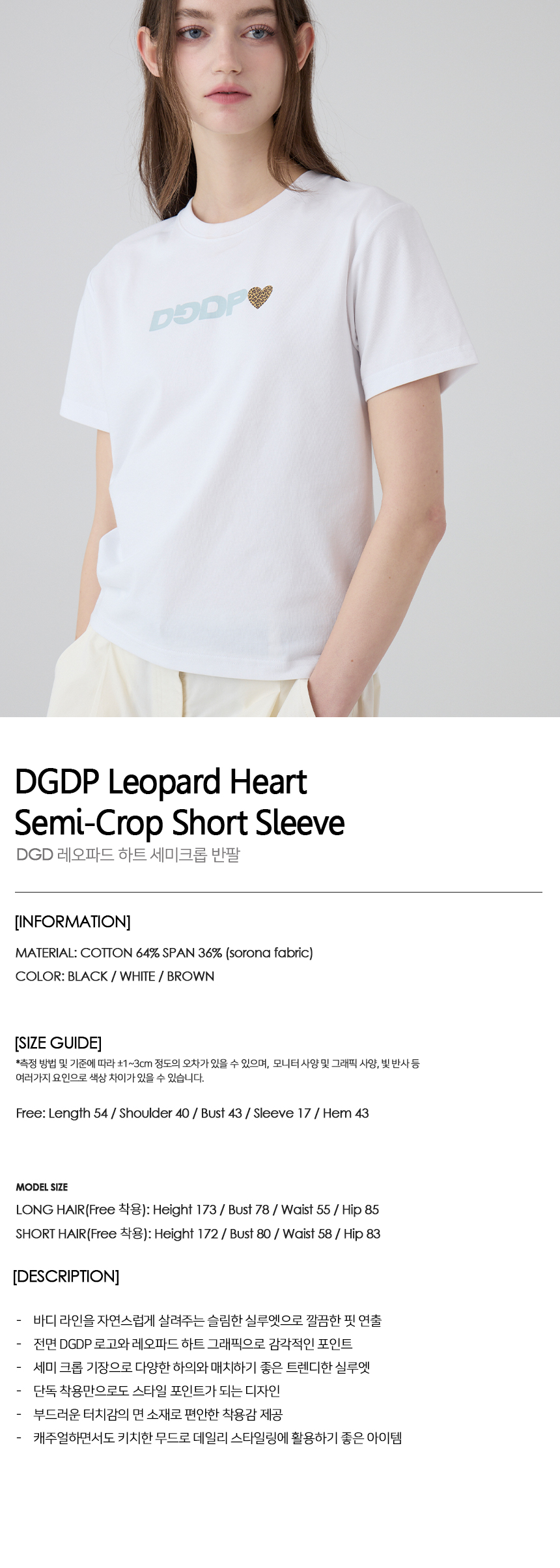 DGDP 레오파드 하트 세미크롭 반팔_화이트