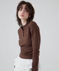 DGDP 스퀘어 로고 슬림핏 롱슬리브_브라운