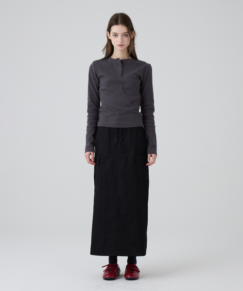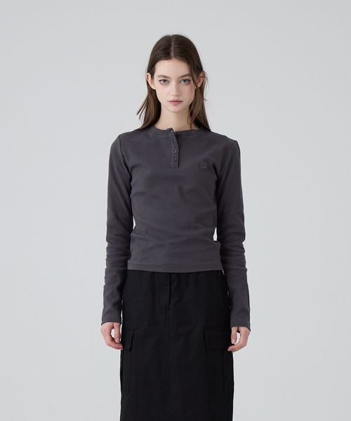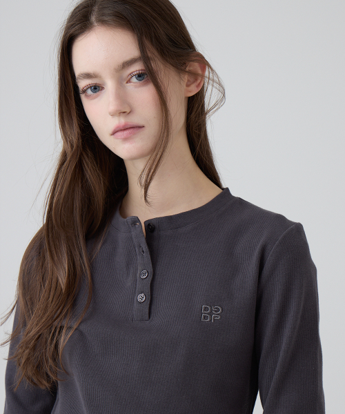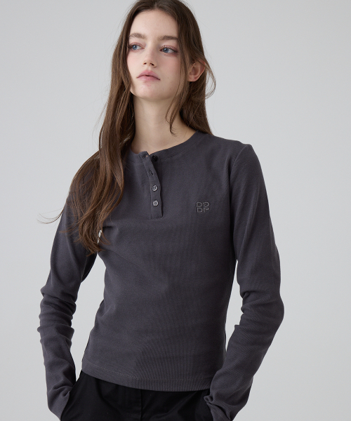 DGDP 스퀘어 로고 슬림핏 롱슬리브_차콜