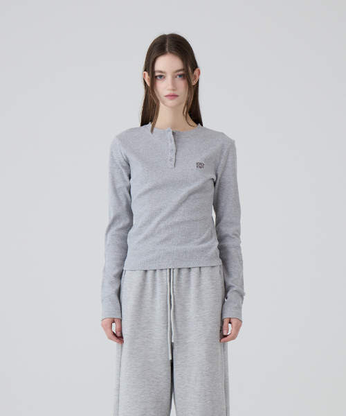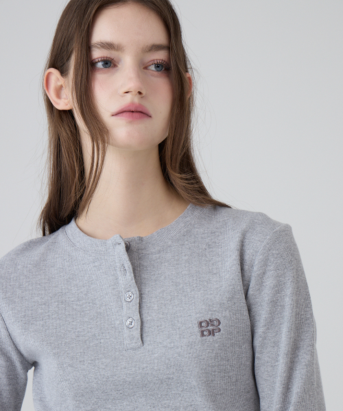 DGDP 스퀘어 로고 슬림핏 롱슬리브_멜란지그레이