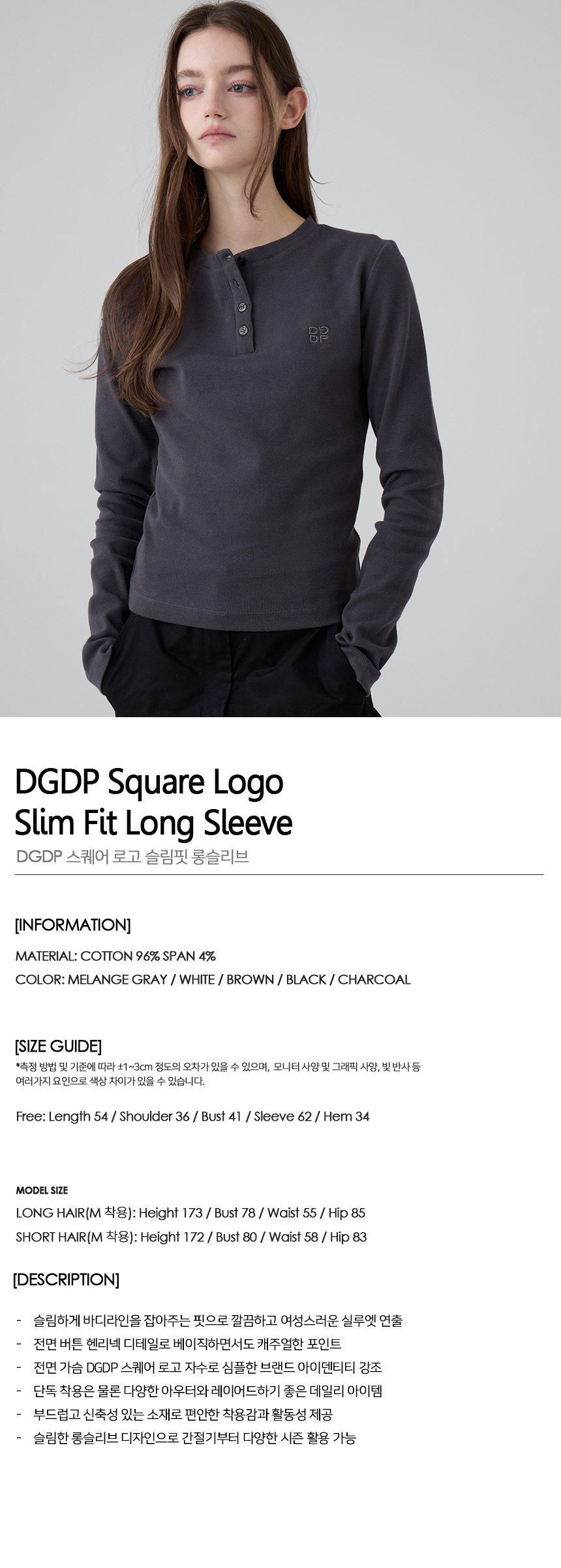 DGDP 스퀘어 로고 슬림핏 롱슬리브_차콜