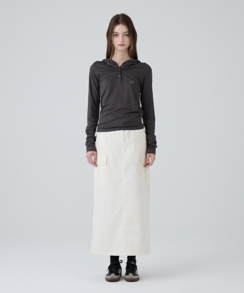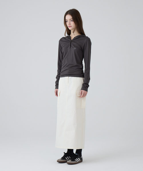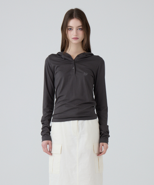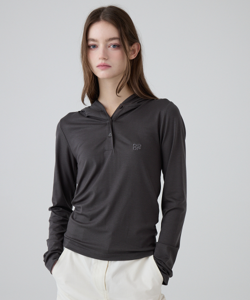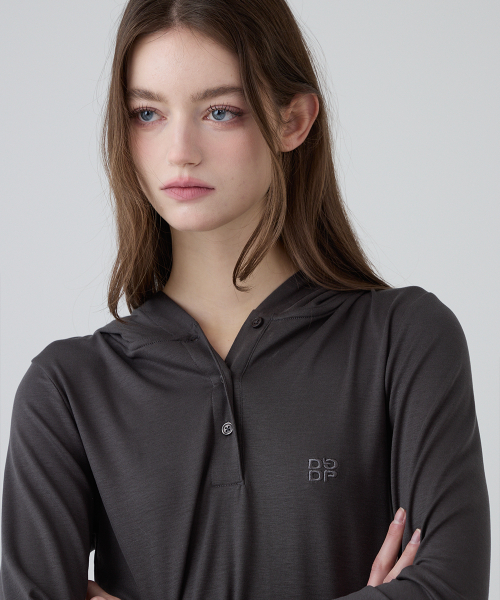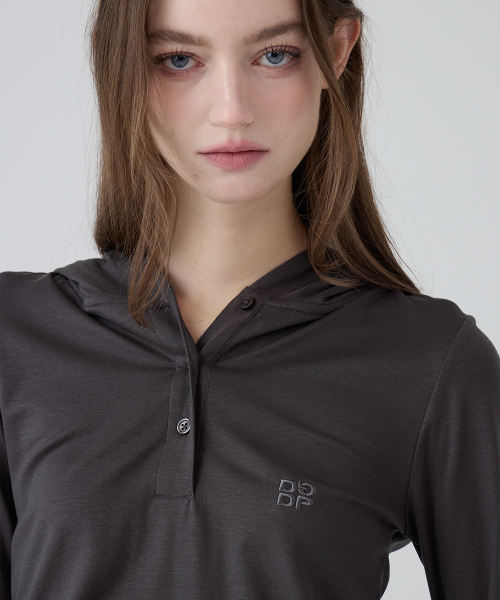 DGDP 스퀘어 로고 슬림핏 후드_차콜