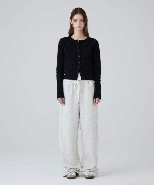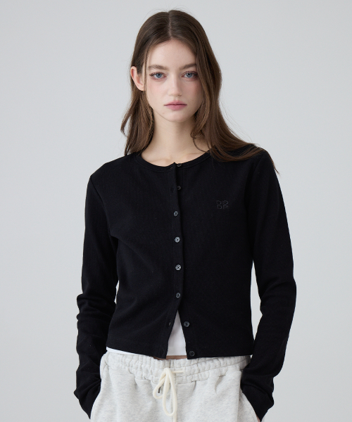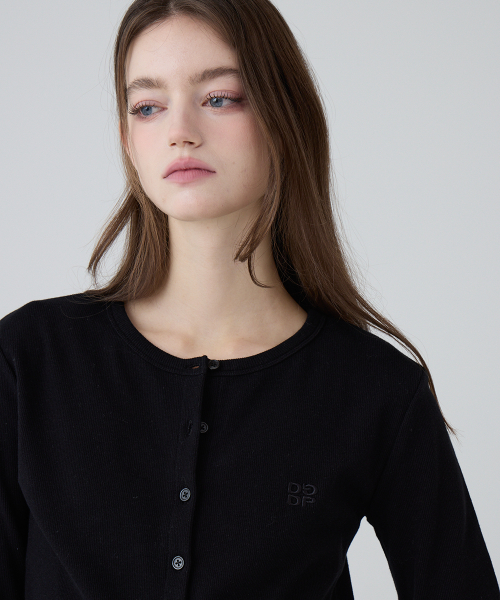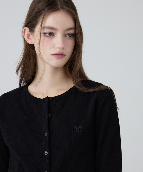 DGDP 스퀘어 로고 슬림핏 라운드넥 가디건_블랙