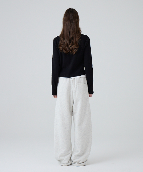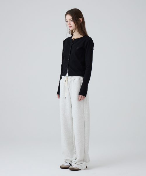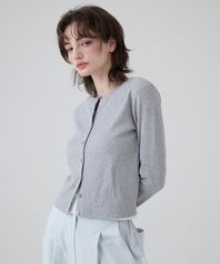 DGDP 스퀘어 로고 슬림핏 라운드넥 가디건_멜란지그레이
