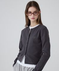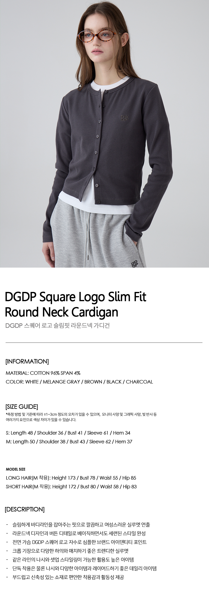 DGDP 스퀘어 로고 슬림핏 라운드넥 가디건_차콜