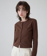 DGDP 스퀘어 로고 슬림핏 라운드넥 가디건_브라운