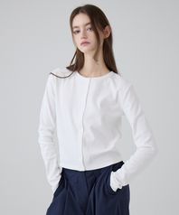 DGDP 스퀘어 로고 슬림핏 라운드넥 가디건_화이트
