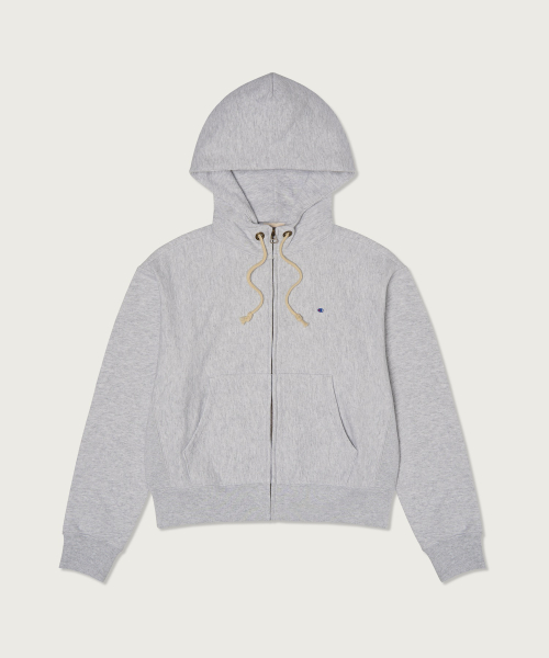 여성 리버스위브 빅 로고 크롭 후드 집업 Light Grey