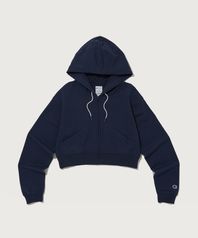 여성 NYC 크롭 후드 집업 Navy