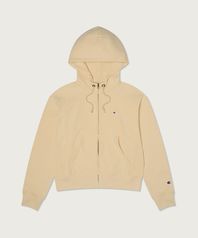 여성 리버스위브 빅 로고 크롭 후드 집업 Beige