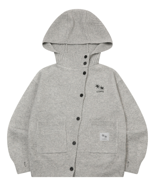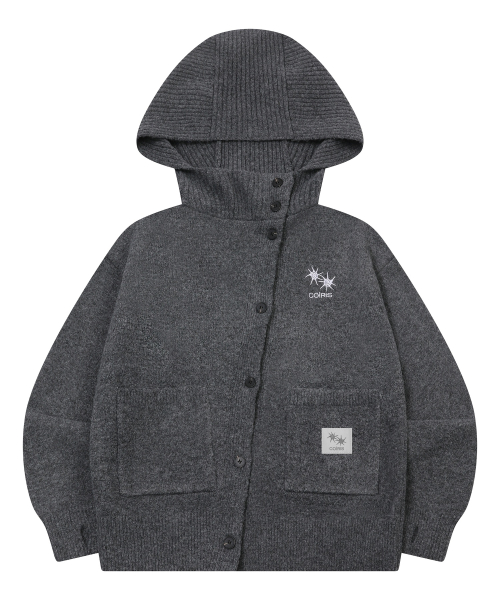 저니 사선 버튼 하이넥 후드 니트 가디건 (2컬러)