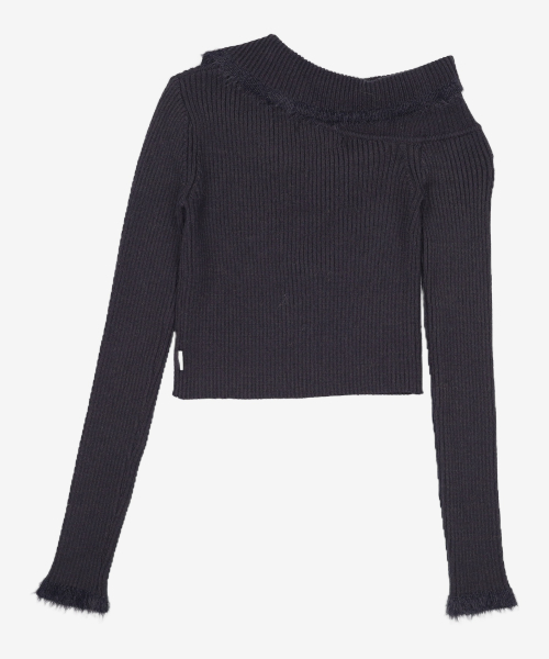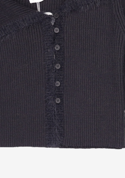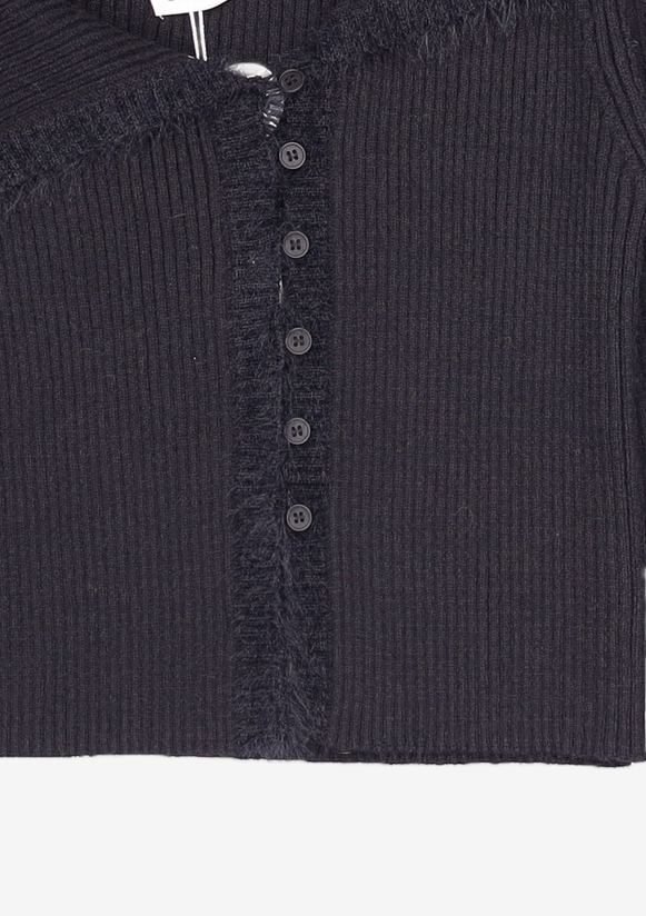 ASYMMETRIC BUTTON CARDIGAN [BLACK]