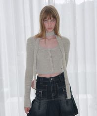 HAIRY MULTI MIX KNIT CARDIGAN [GRAY]