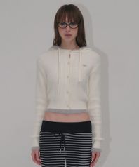HOOD HAIRY CARDIGAN [IVORY]