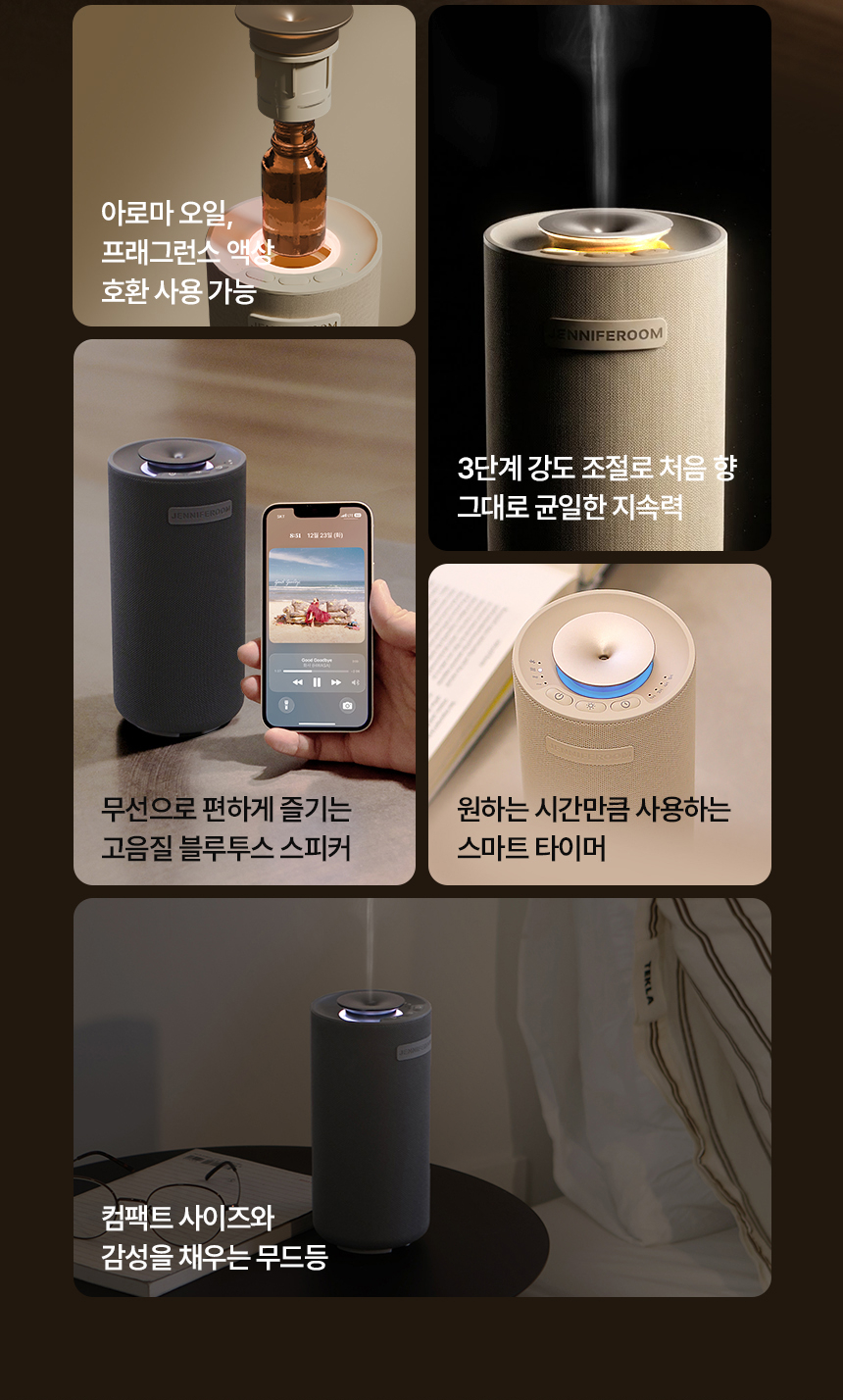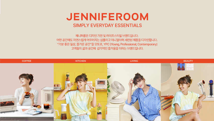 제니퍼룸(JENNIFEROOM)은 디자인 가전 및 라이프스타일 브랜드입니다. 어떤 공간에도 자연스럽게 어우러지는 심플하고 미니멀하며 세련된 제품으로 디자인합니다. "기분 좋은 일상, 즐거운 공간"을 모토로 고객들의 삶과 공간에 감각적인 즐거움을 더하는 브랜드입니다.