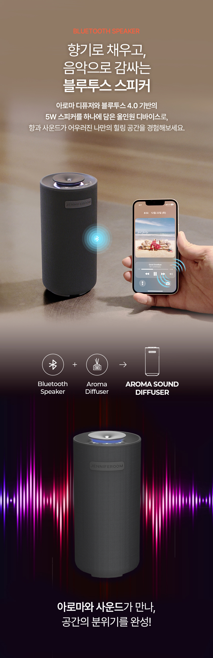 아로마 사운드 디퓨저 미니 2Color (디퓨저/스피커/무드등)