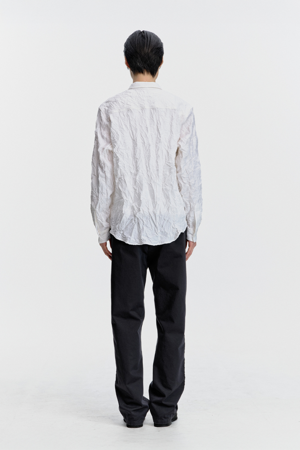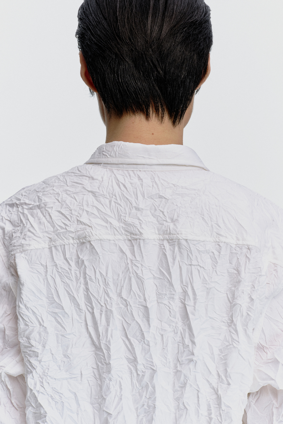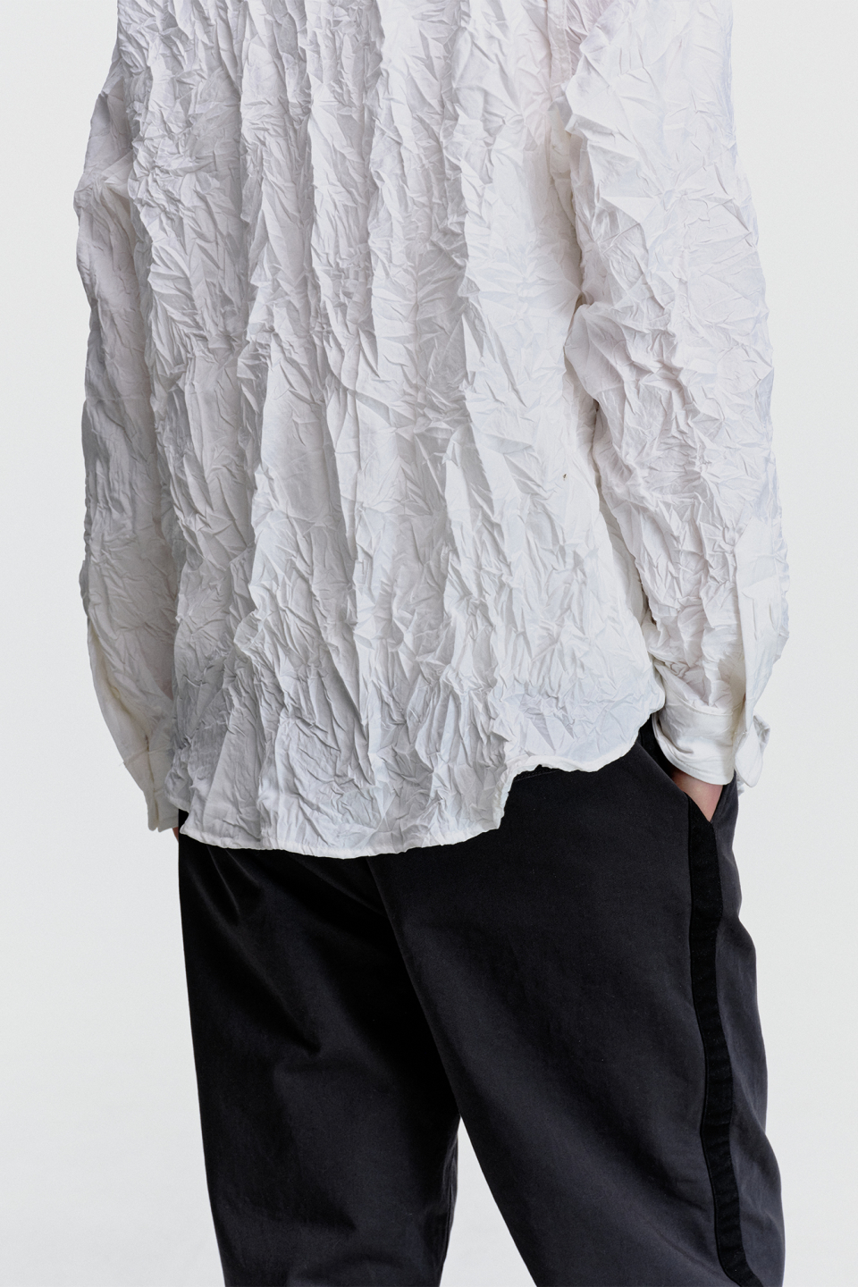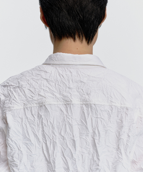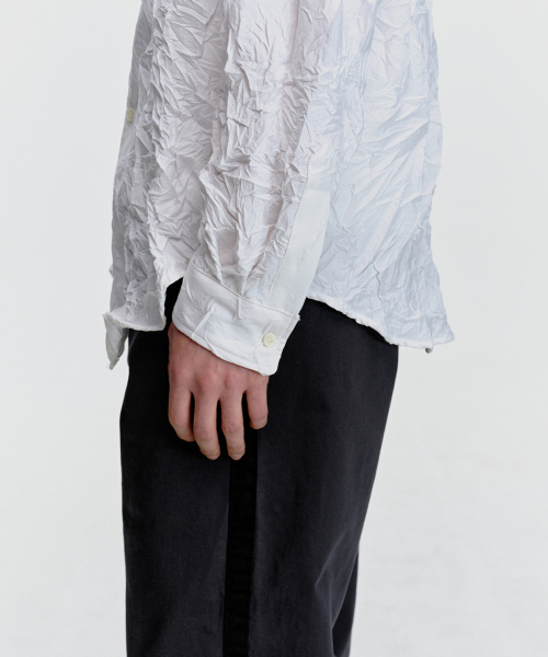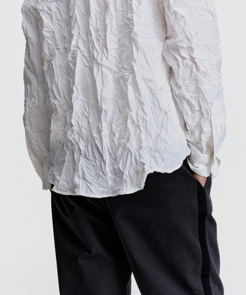 크리즈 가공된 폴리에스터 혼방 소재로 제작한 셔츠 제품