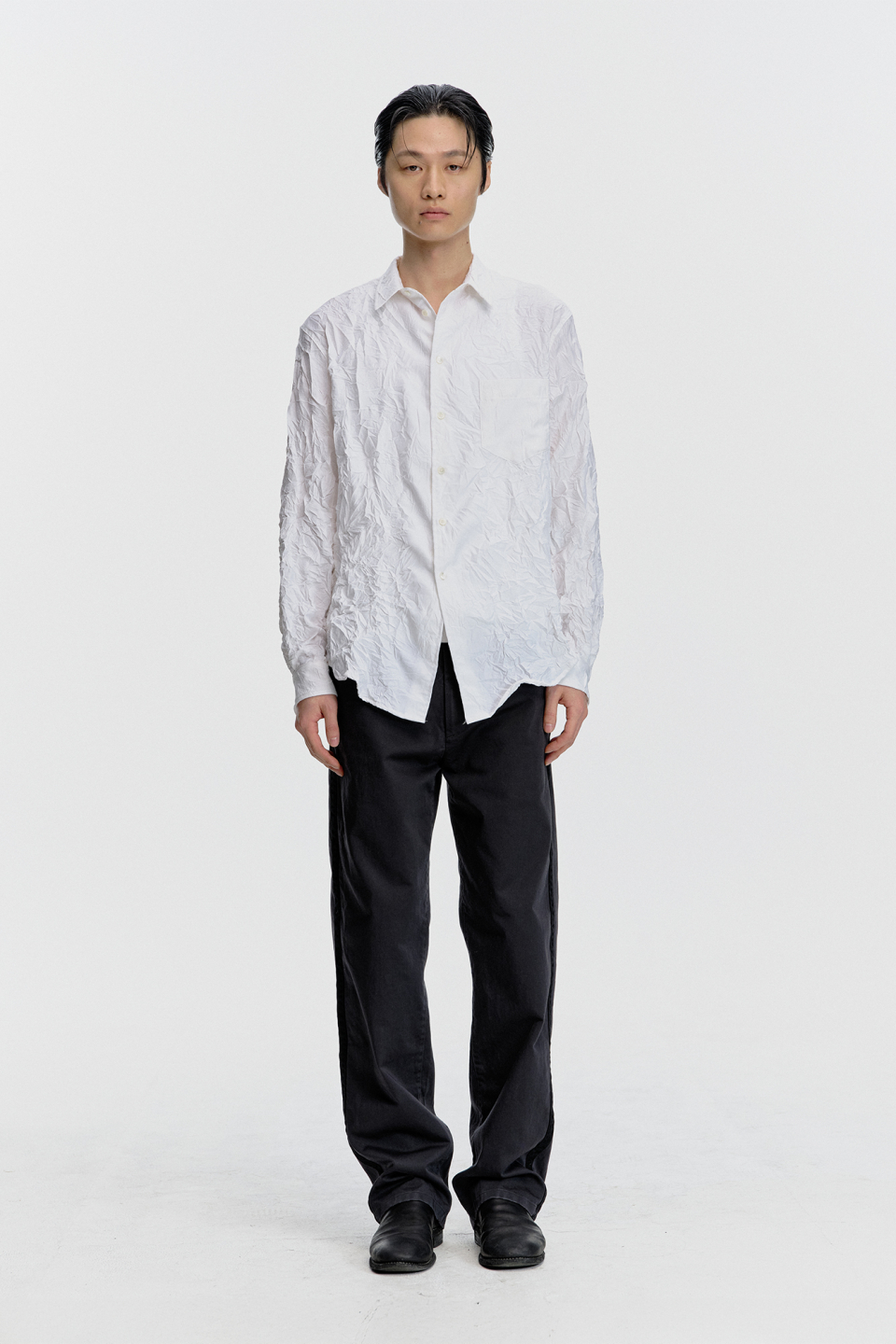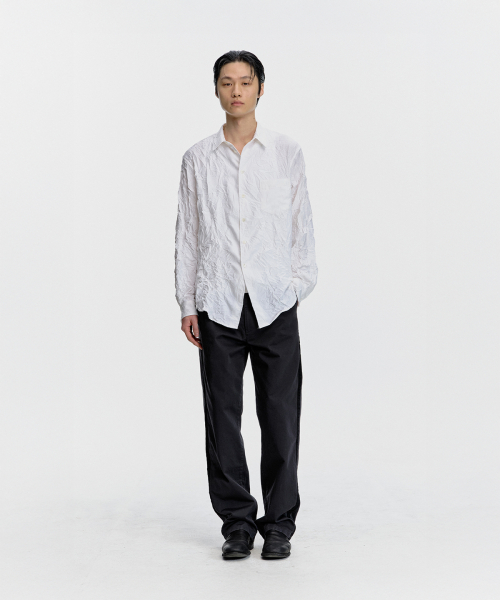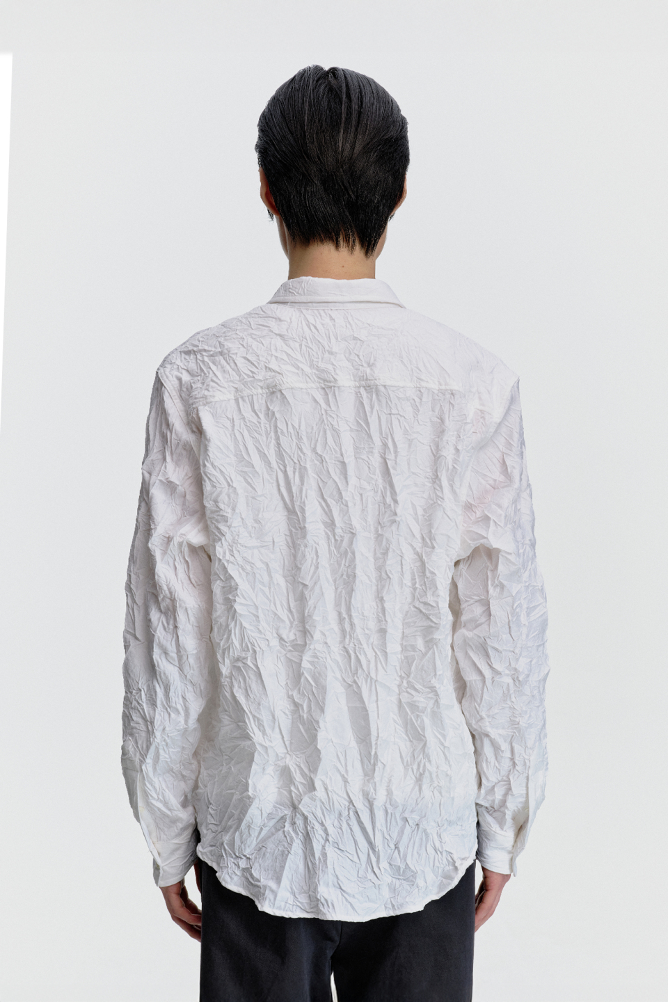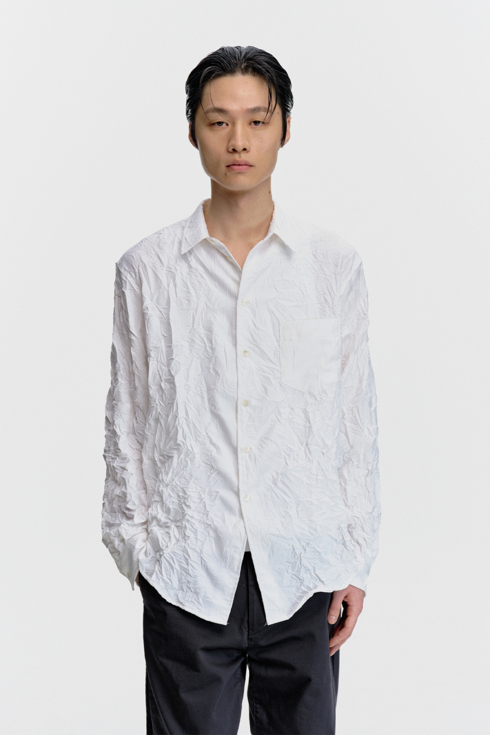 크리즈 가공된 폴리에스터 혼방 소재로 제작한 셔츠 제품