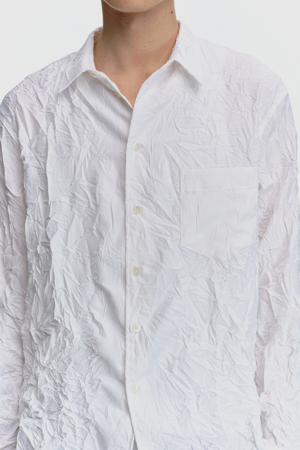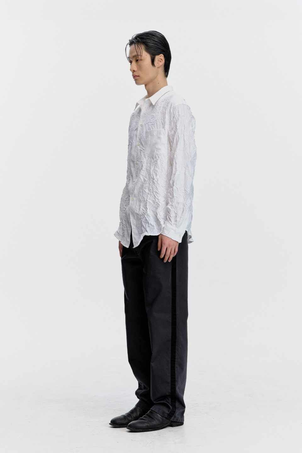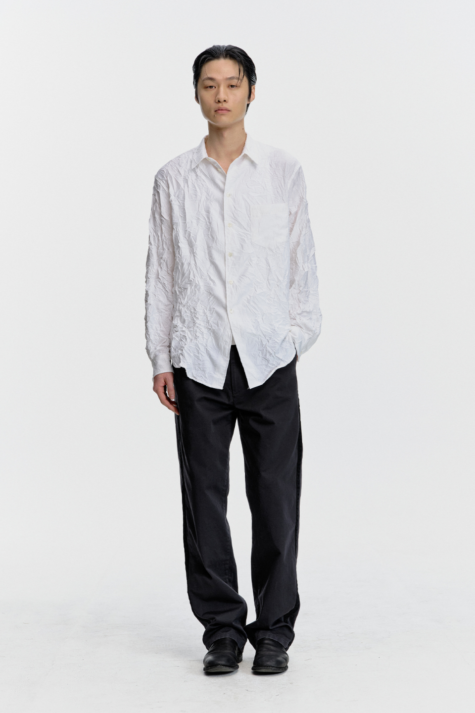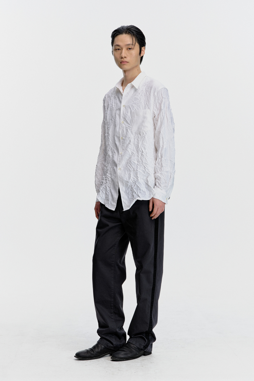 크리즈 가공된 폴리에스터 혼방 소재로 제작한 셔츠 제품
