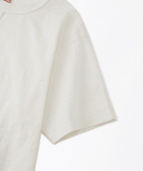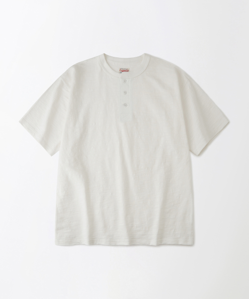 VINTAGE HENLEY NECK HALF SLEEVE TEE_OFF WHITE