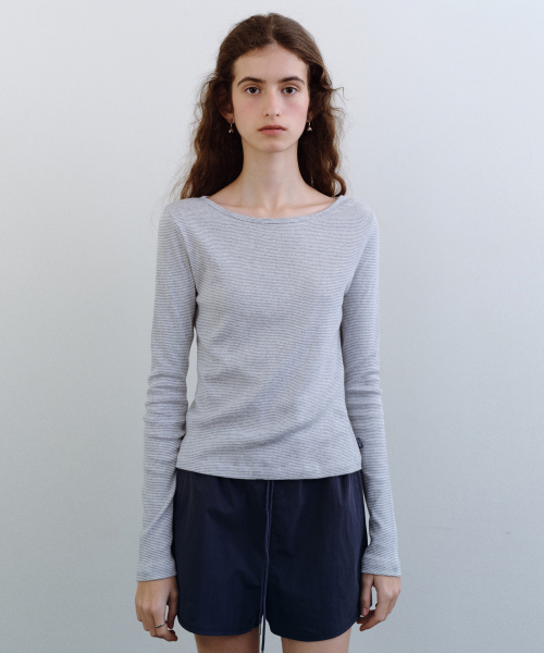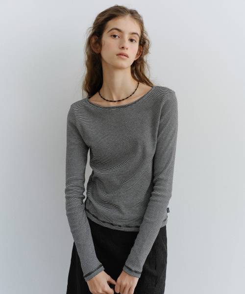 스트라이프 보트넥 티셔츠