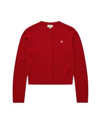 우먼 클로버하트 케이블 가디건 레드