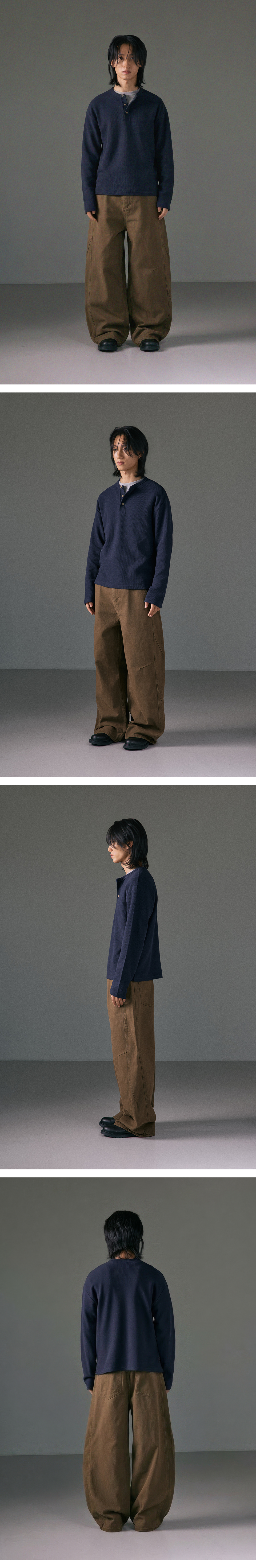 워싱 공정을 통해 자연스러운 컬러감과 빈티지한 텍스처를 완성했습니다.