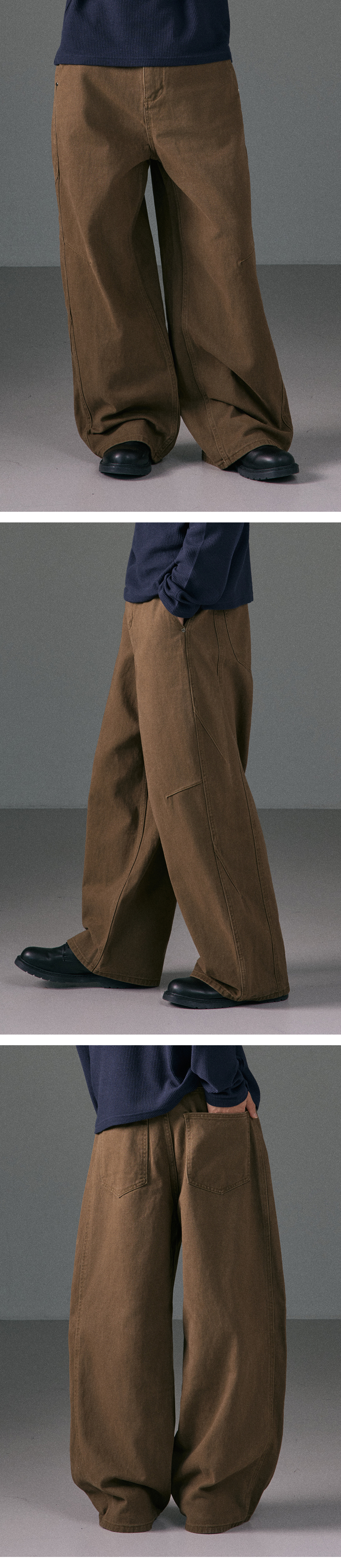 내추럴 워시드 코튼 와이드 스트레이트 팬츠