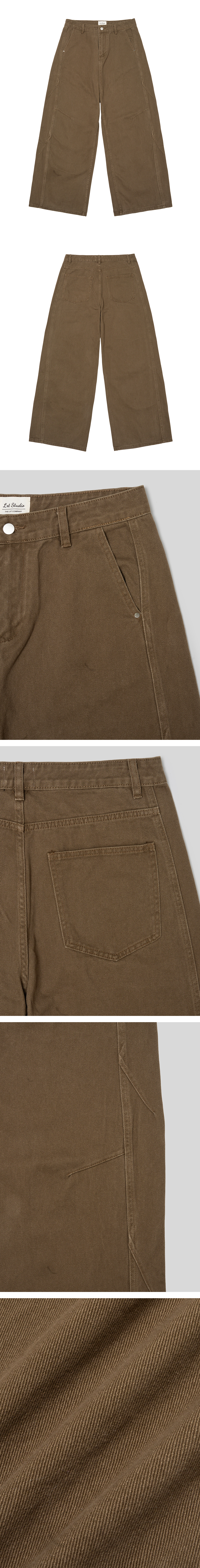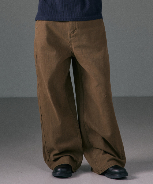 허리부터 밑단까지 일자로 떨어지는 와이드 스트레이트 핏으로 균형 잡힌 실루엣을 연출합니다.