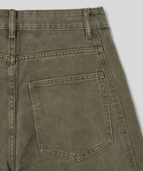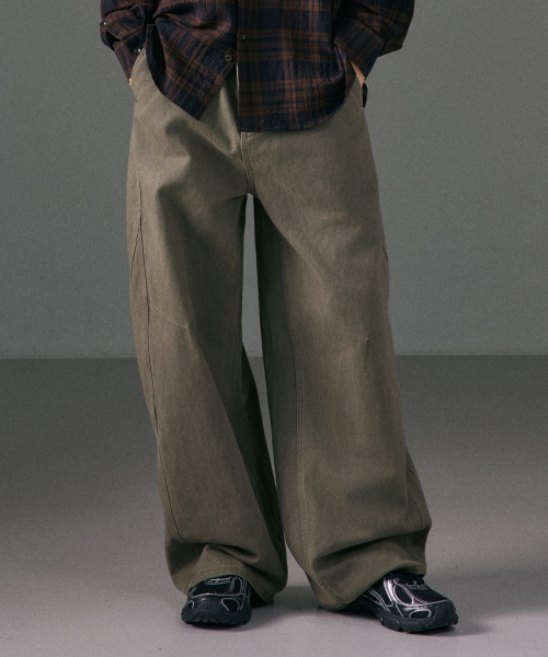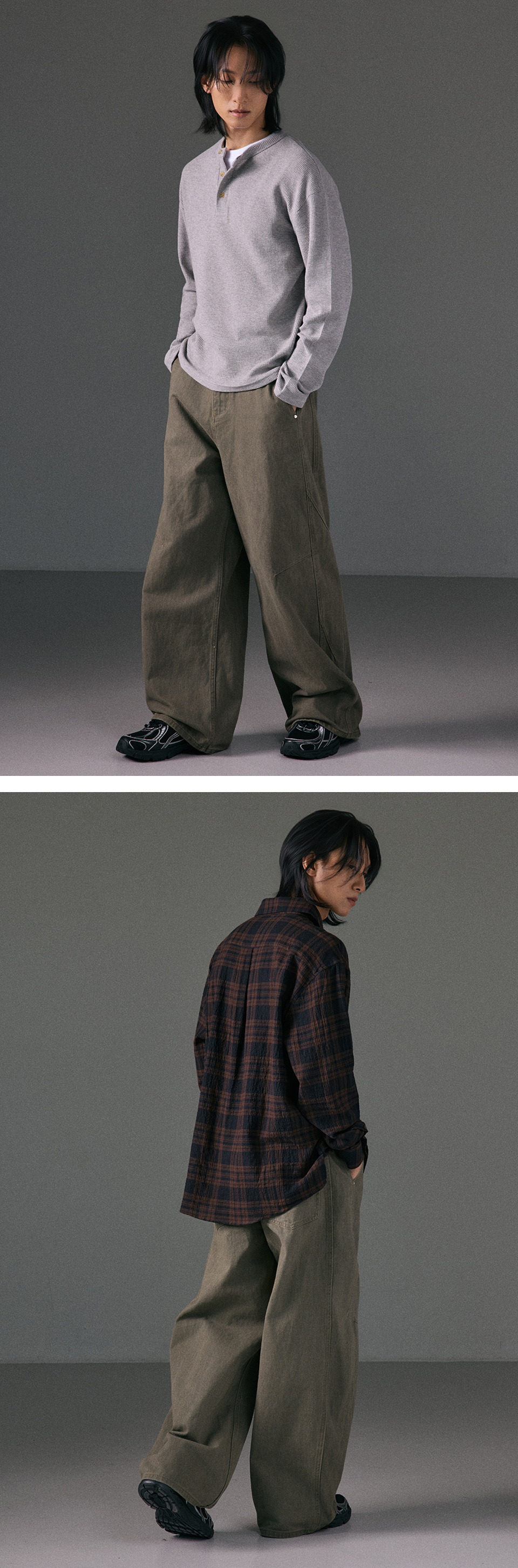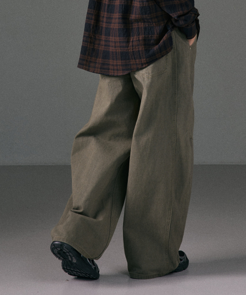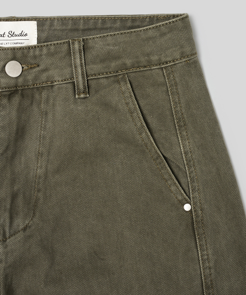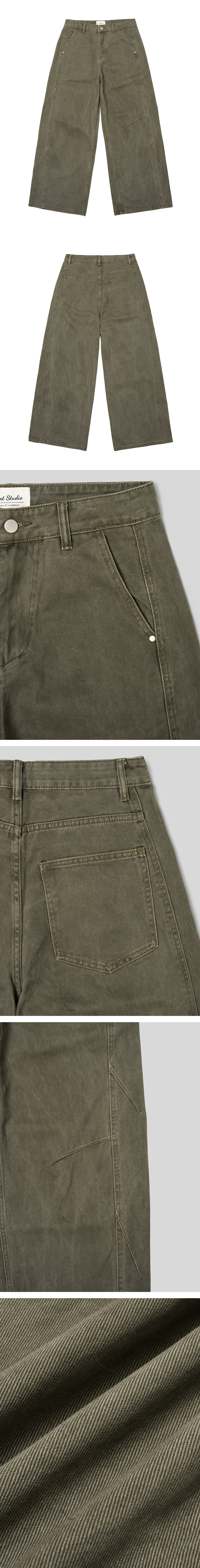 내추럴 워시드 코튼 와이드 스트레이트 팬츠 [카키]